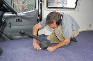 Cutting the carpet is pretty straight-forward and once cut I used contact adhesive (what my American friends call rubber cement, I think) to keep it in place.